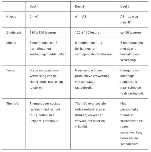 - Alle reproductieve opgaven zijn opgenomen in de digitale leeromgeving NT2+. De productieve opgaven staan in de boeken.